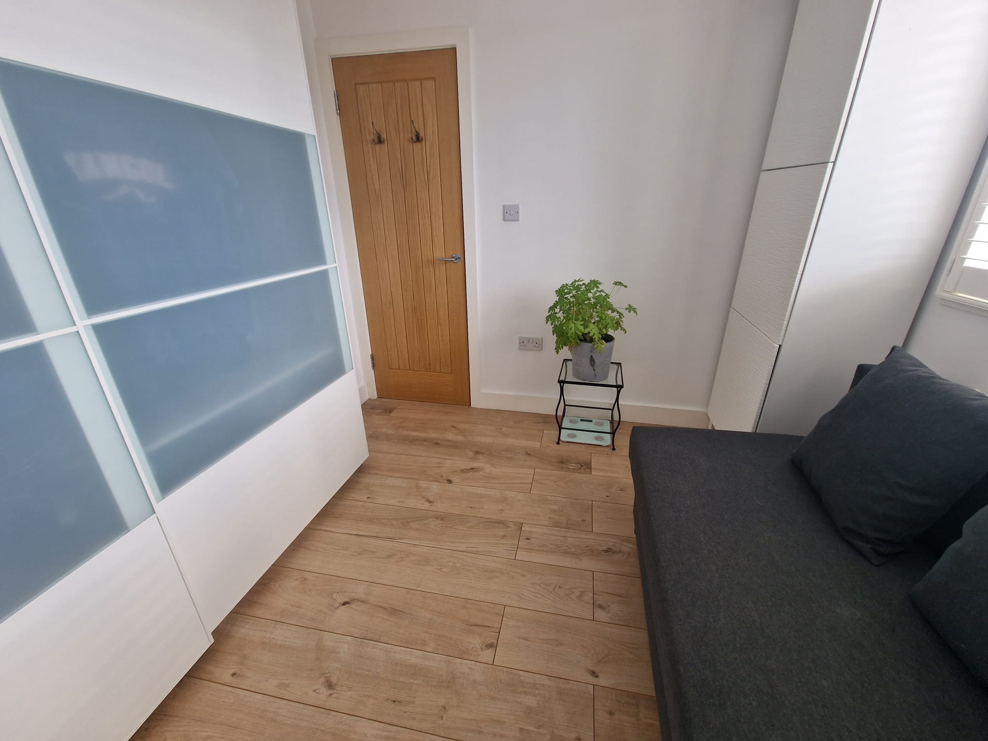 • Two/Three very good size bedrooms, each featuring double-glazed windows with shutters, a wall-mounted radiator, and laminate floor.