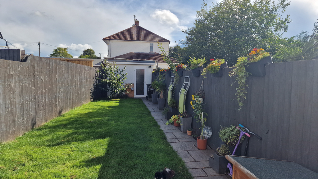 Rear Garden: Step into a beautiful and peaceful space enclosed by wooden fence panels. Mostly laid with grass, featuring a stoned patio.