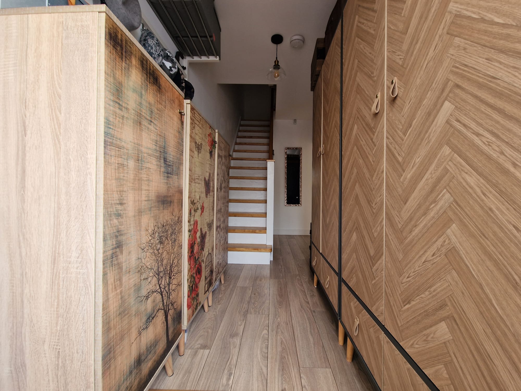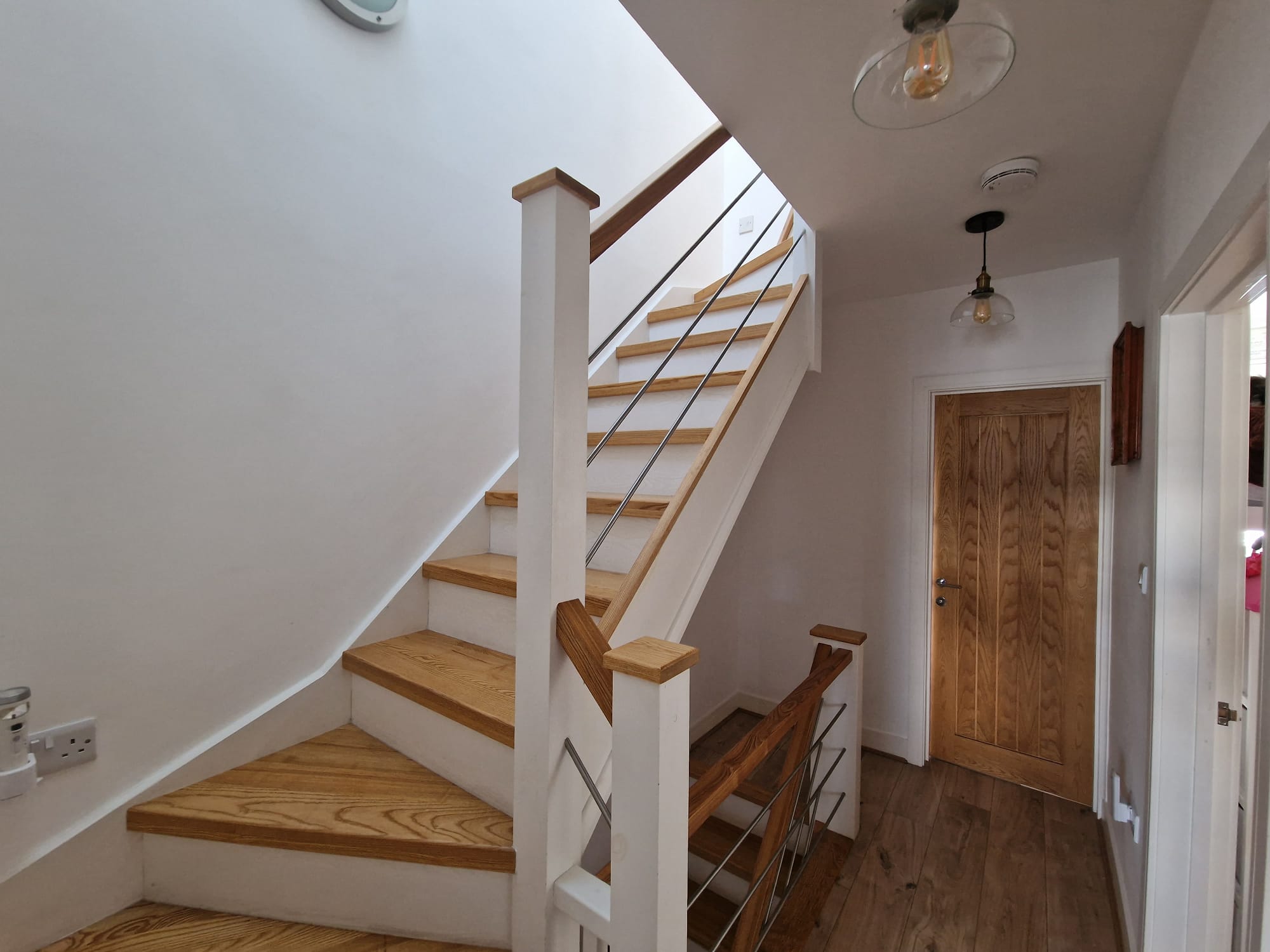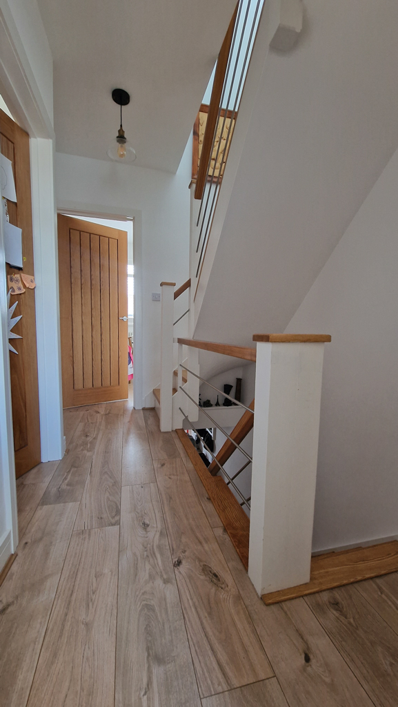 Entrance Hall: Step into a welcoming entrance hall with beautiful wooden steps leading to the first and second floors. There’s ample space for a wardrobe to stow away outerwear and shoes.